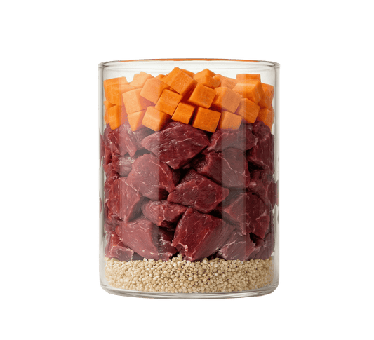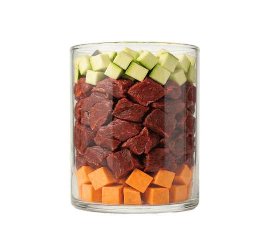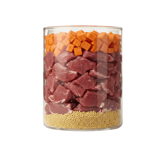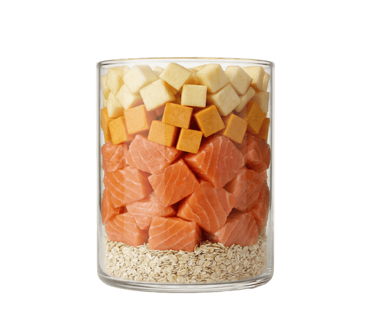 3x helles Fleisch, 3x rotes Fleisch, 1x Fisch. Der Schlüssel für eine rundum gesunde Ernährung deines Hundes. Einfach, effektiv, ernährungsreich!